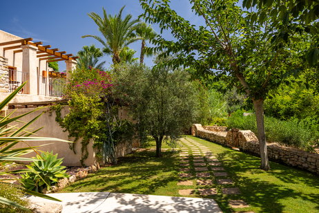 Gemütliche Räume von 38 bis 45 qm bieten ein Schlafzimmer, ein Badezimmer mit großem Doppel-Whirlpool und eine private Süd-Terrassen-Balkon mit spektakulärem Blick auf die Landschaft. Diese Superior-Zimmer bieten weite Panoramablicke auf den Jaume-Berg und die Bougainvillea- und Palmen-Gärten, die das Hotel umgeben. Queen Size Bett 160 x 190. Doppel-Badewanne-Whirlpool im Badezimmer.
